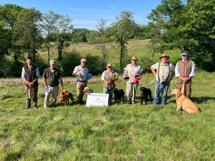 All the dogs were kept in for the two afternoon tests, the test Andy was judging was a mark thrown through a gap in the trees into a field of rough grasses, once thrown there was a shot to the far left indicating an unseen dummy, the mark was collected first then the blind, lack of scent made both these tricky. The other exercise was a double mark, with competitor and Peter standing at the top of the hill, one mark was straight in front, just slightly over a ditch into the meadow, the second over to the far right, the competitor chose to pick in either order. Surprisingly a few more dogs fell by the wayside.