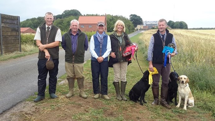 We thank Mr R Ward for allowing us to hold our novice cold game test in the huge beet field. With the very hot dry weather we have been having, the sugar beet leaves have not grown to waist height this year, so walking was easier and when it rained (!) after lunch for a while it wasn’t too unpleasant. We also thank Thomas Bell Country Store for sponsoring this event.