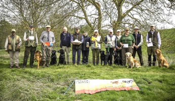Test 2: started with a shot to herald a mark about 30 yards along the ridge. But picked first was a blind, with shot, some 80 yards on a path round a wooden fence. The dogs had first to go down a steep incline such that the handlers could not see them until they were down the slope. On return the dogs retrieved the mark.