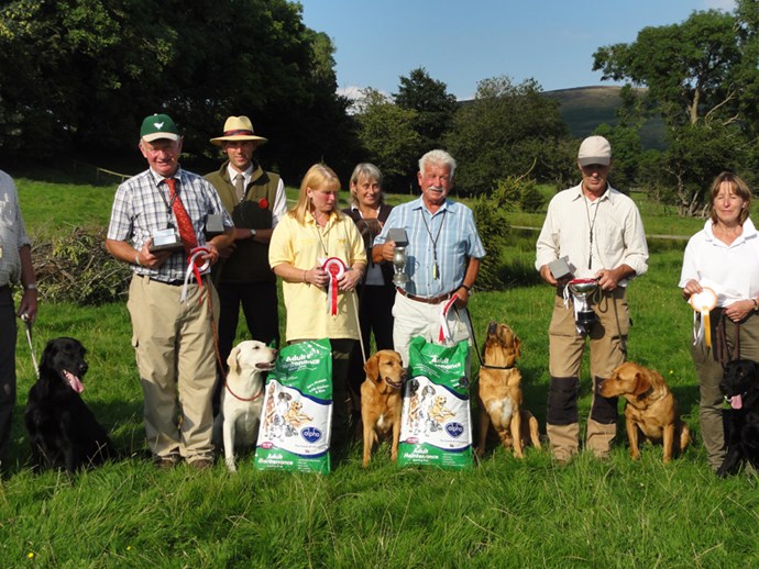 This year August Bank Holiday lived up to its name with warm, sunny weather bathing the scenic setting of the Hope Valley Show in the Peak District. A big crowd enjoyed the panoply of events including the Inter-Breed Team Working Test organized by the United Retriever Club. Eight teams took part, with 2 Novice dogs and 2 Open dogs in each team, and much interest focused on the different styles of work of Chesapeakes, Irish Water spaniels, Golden Retrievers, Flatcoats, Curly-coated Retrievers, and three colour varieties of Labradors.