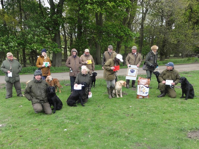 The three judges were Philippa Williams, Fred Newton and Alan Richardson. The ground consisted of hilly grassland with a pond, a wood and scattered trees. It was a cold and windy day, and long retrieves into the wind proved to be particularly tricky. The dogs were tested on all types of ground, with marks, blinds and a walk-up. After 8 retrieves, a run-off took place for the top dog and then 8 awards were announced.