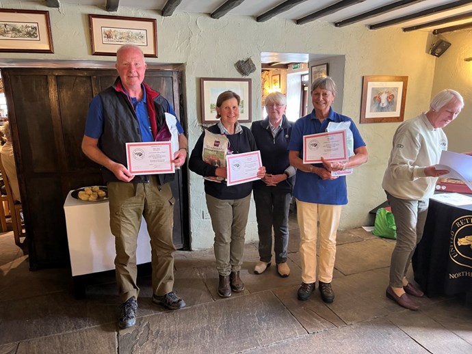 It was light rain in the morning but heavier after lunch but this didn’t dampen anybody’s spirits and the dogs didn’t seem to mind at all. Finishing off, trophies were presented and a large array of raffle prizes were drawn then a fabulous buffet was served all at the Brown Horse Inn only a short drive from the venue.